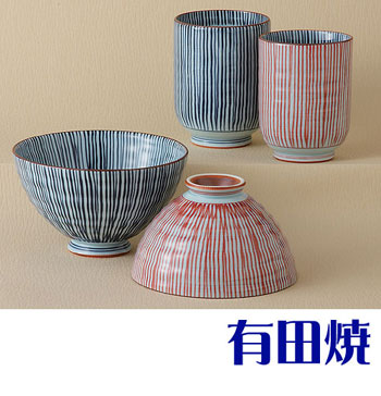 有田焼 古代千筋 夫婦茶碗+夫婦湯飲みのセット