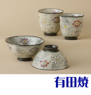 有田焼 化粧コスモス 夫婦茶碗+夫婦湯飲みのセット