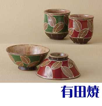 有田焼 綿木ノ葉 夫婦茶碗+夫婦湯飲みのセット