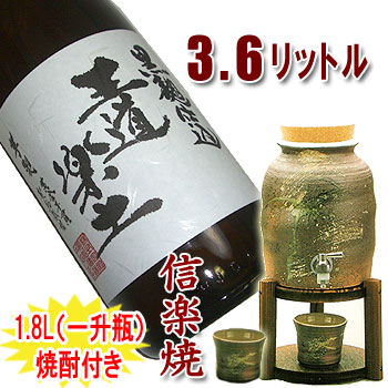 | 古信楽3.6L(焼杉木台付・専用カップ2個付き)+1.8L(一升)本格芋焼酎 王道楽土 |