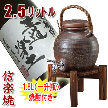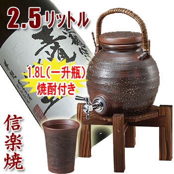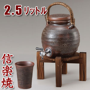 信楽焼 焼酎サーバー 手付きサーバー 2.5L(焼き杉木台付)