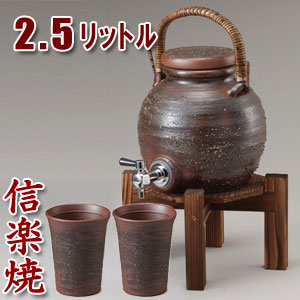 信楽焼 焼酎サーバー 手付きサーバー2.5L お得セット(焼酎カップ・焼杉木台付)