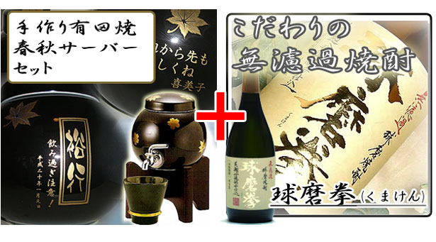 還暦祝いにオススメ♪ 有田焼 焼酎サーバー 春秋 1.5L+本格 米焼酎(球磨拳)